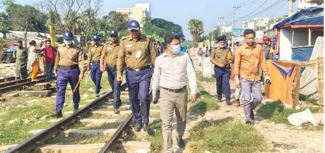 নিজস্ব প্রতিবেদক : গাজীপুরের জয়দেবপুর রেলওয়ে স্টেশন ও আশপাশ এলাকায় রেলওয়ে কর্তৃপক্ষের পরিচালিত বিশেষ অভিযানে ১০৭টি অবৈধ দোকান উচ্ছেদ এবং প্রায় ১২০ জন হকারকে সরিয়ে দেওয়া হয়েছে। সোমবার সকাল ১০টা থেকে বিকাল ৩টা পর্যন্ত টানা এ অভিযান পরিচালিত হয়।