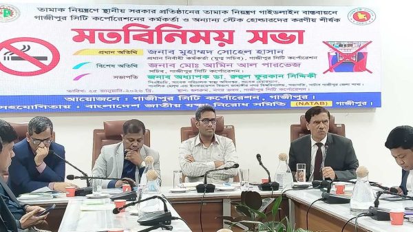 গাজীপুরে তামাক নিয়ন্ত্রণ গাইডলাইন বাস্তবায়নে মতবিনিময় সভা
