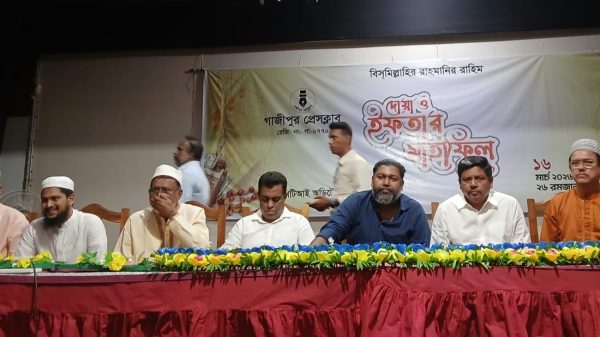গাজীপুর প্রেসক্লাবের আয়োজনে দোয়া ও ইফতার স্টাফ রিপোর্টার গাজীপুর: গাজীপুর প্রেসক্লাবের আয়োজনে দোয়া ও ইফতার মাহফিল অনুষ্ঠিত হয়েছে। গতকাল সোমবার মহানগরীর পিটিআই অডিটোরিয়ামে সংগঠনের সিনিয়র সদস্য দেলোয়ার হোসেনের সভাপতিত্বে আয়োজিত